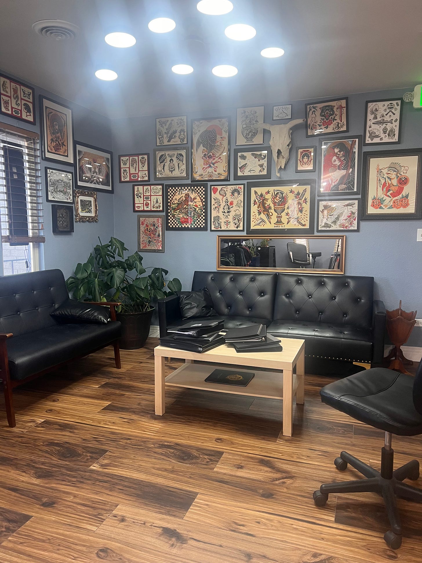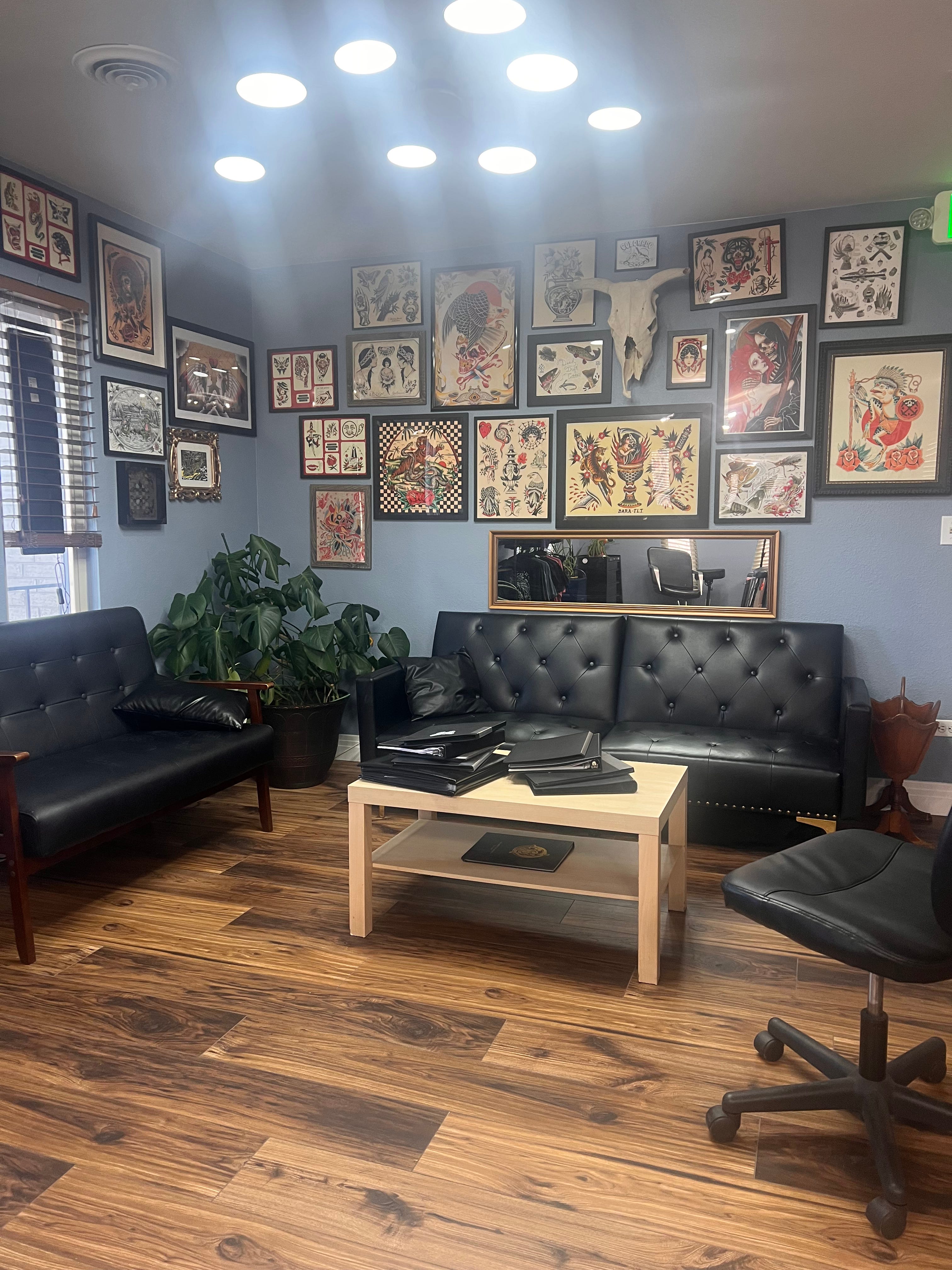 RM: There is actually lot of similarity between sitting on a tattoo table and sitting on a therapy couch or massage table. Getting a tattoo is often even referred to as "ink therapy." You're choosing to express yourself, whether it's something deep and meaningful or just for fun, in the most visible and permanent way you can when you sit for a tattoo, and you and your artist are often sharing some very deep conversations. Tattoo artists can be great listeners, and they hold a unique space for you to just be still and totally vulnerable while you become their canvas. You find yourself healing during this experience when you find the right artist to help you express yourself visually on your body. So providing a space that offers different mediums for inner and outer healing feels really special and powerful. It's like a choose-your-own-adventure experience in a way. Need to talk about what's going on? We've got tattoo artists or space for talk-therapists! Don't want the physical pain but just someone to listen? Talk-therapy upstairs! Have physical pain, need relief, and don't want to talk about it? Massage-therapy upstairs too! Need to express yourself outwardly or commemorate something important to you? Tattoos on the second floor! The energies are really a beautiful mix and I'm honestly not surprised as much as I'm excited by it and thinking "why hasn't this all been combined all along?!"
